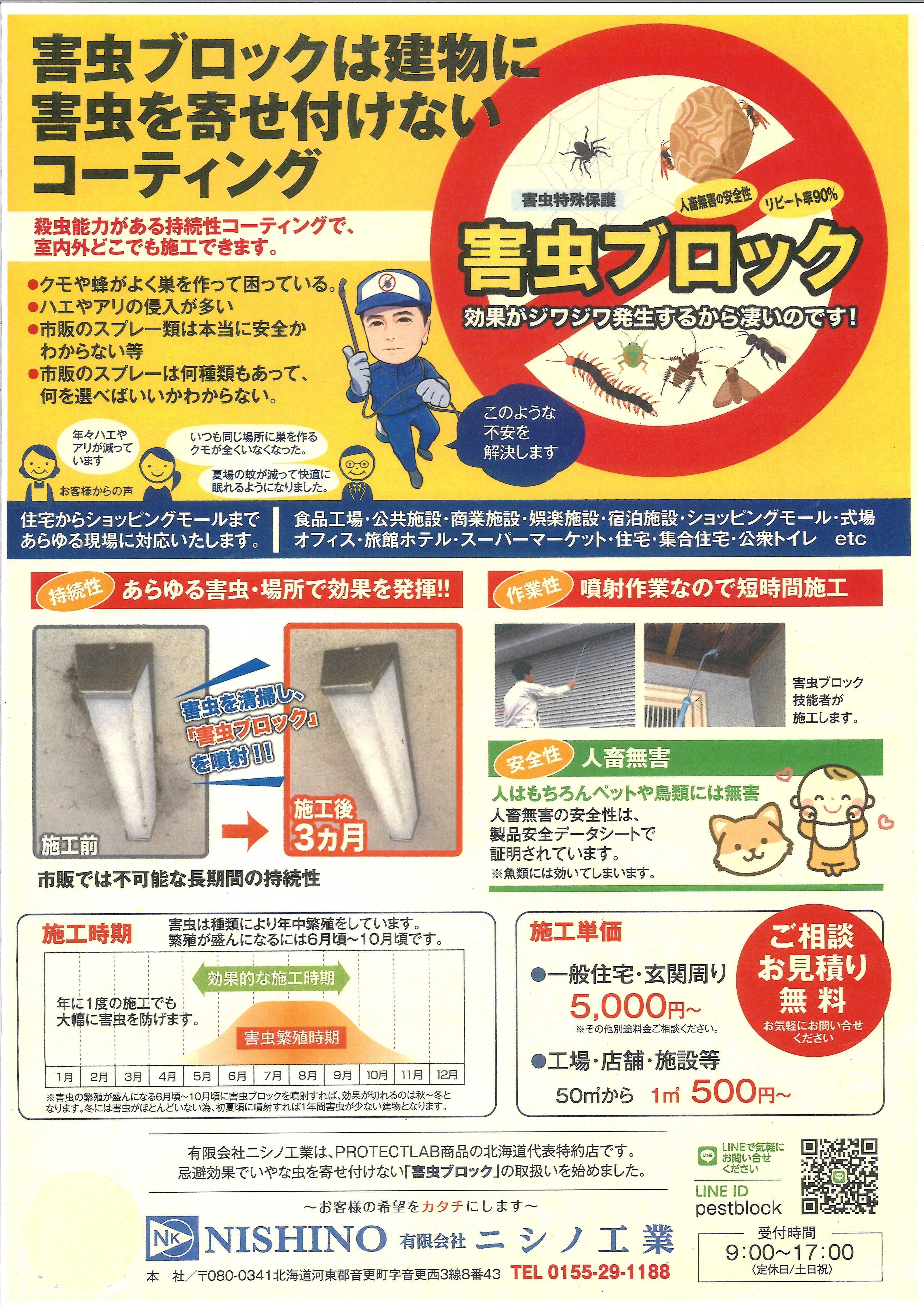 忌避効果でいやな虫を寄せ付けない「害虫ブロック」の取り扱いをしております。PROTECTLAB商品の北海道代表取扱店です。
